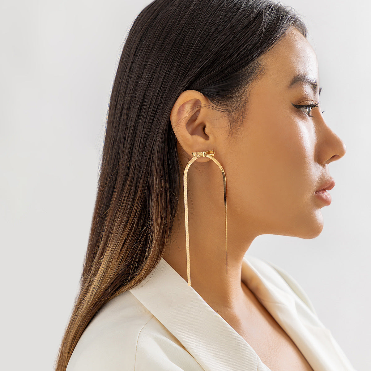 2023 Snake Bone Chain Retro Studs Exaggerated Bow Tassel Earrings