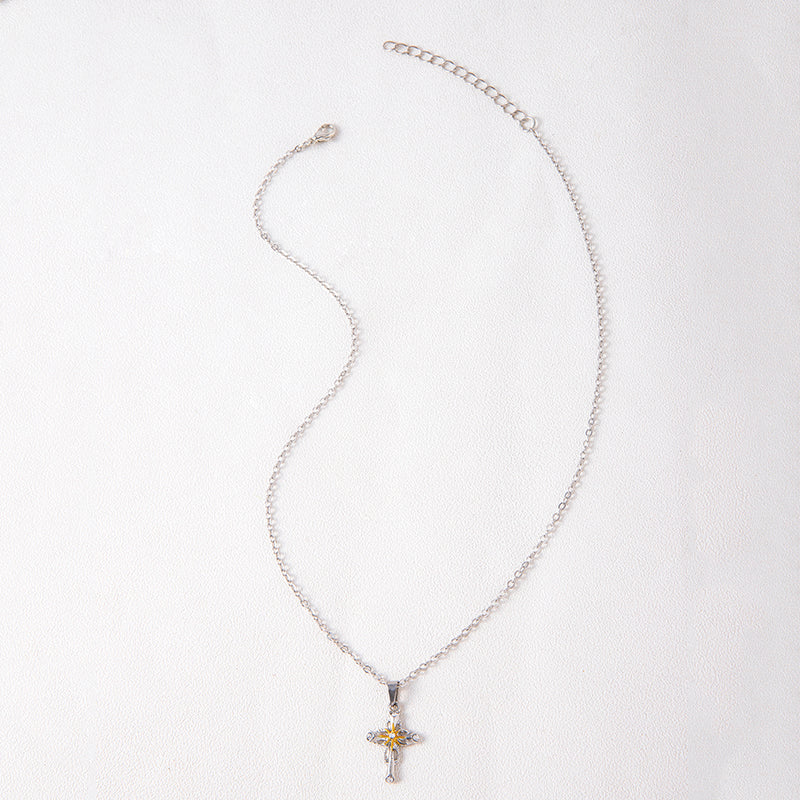 2023 New Cross Flower Pendant Necklace Catholic Faith Silver Necklace