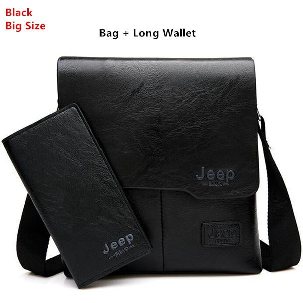 JEEP BULUO Man's Bag 2PC/Set Men Leather Messenger Shoulder Bags