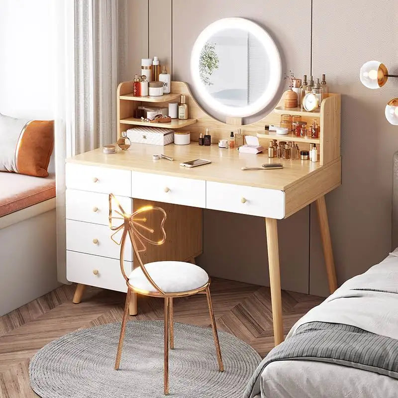 Mirror Cabinet Led Dressing Table Brown Bedroom Multifunctional Luxury Dressing Table Bedroom Charm Tocador Furniture Makeup