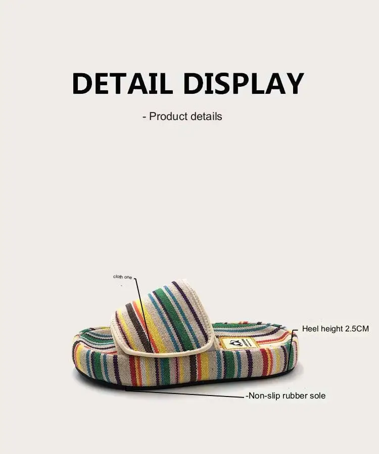 Paste Thick-soled Slippers Women 2023 Summer New Niche Design Rainbow Color Canvas Casual Outerwear Flip Flops