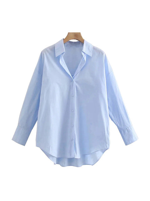 TRAF Women Fashion Loose Asymmetry Poplin Blouses Vintage Long Sleeve